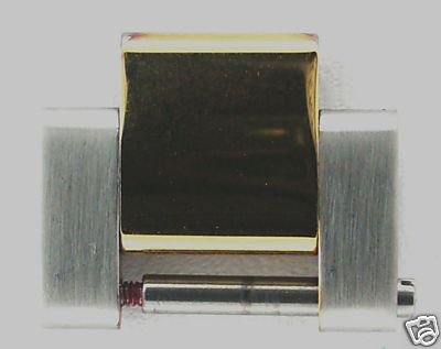 The item for sale is a brand new aftermarket solid link in yellow GP/SS. It is made for Rolex men's Oyster watch band. Topof link is shiny gold/matte with side shiny finish.